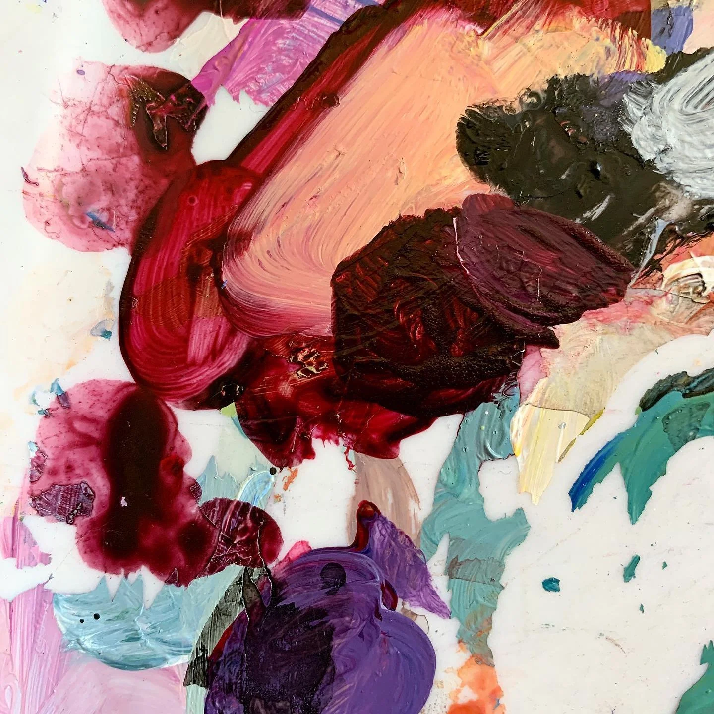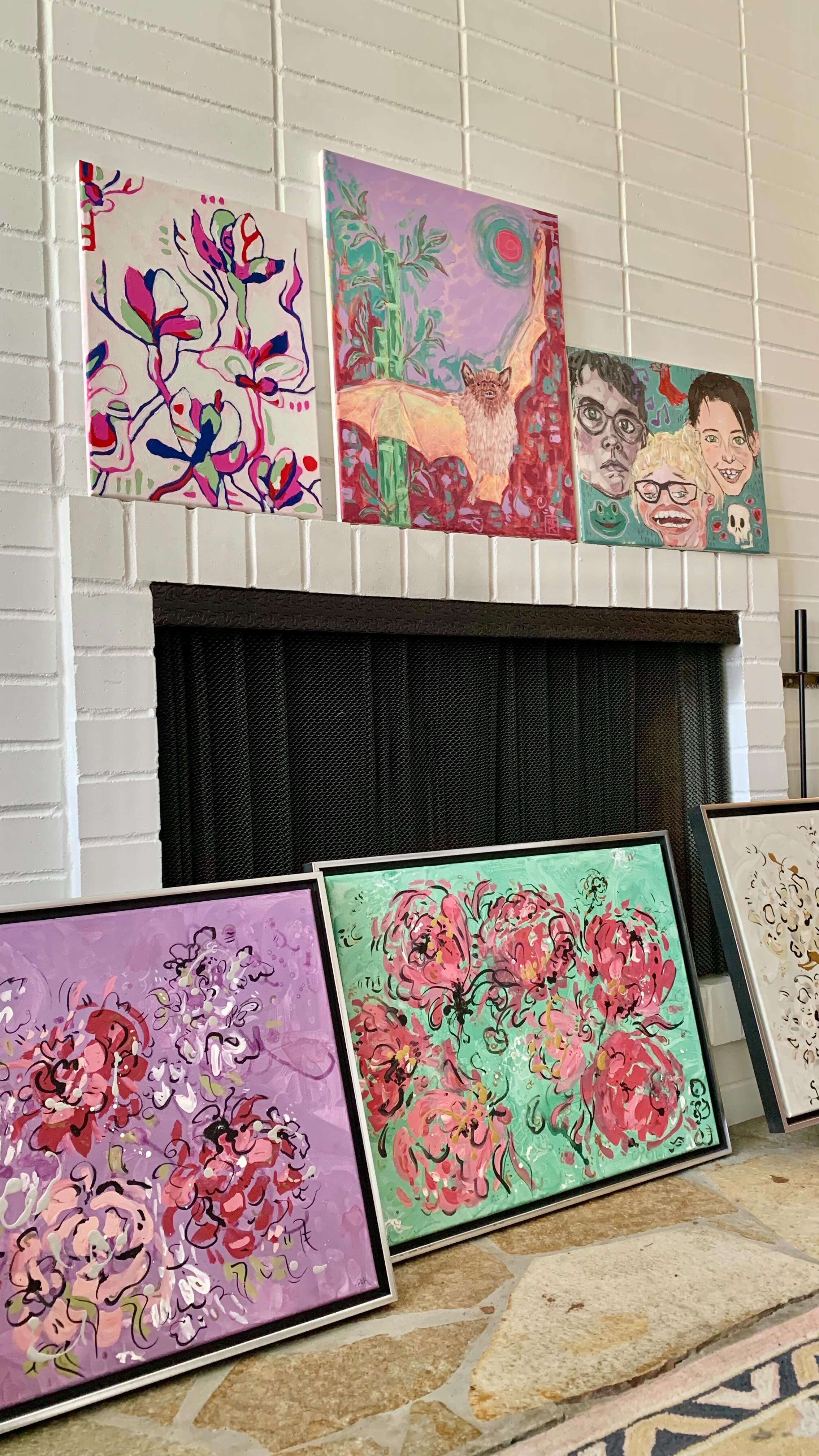 My abstract work is inspired by the books I read, the films I watch, the colors and forms that present themselves to me on long nature strolls, and everything in between that sparks joy and interest in me.