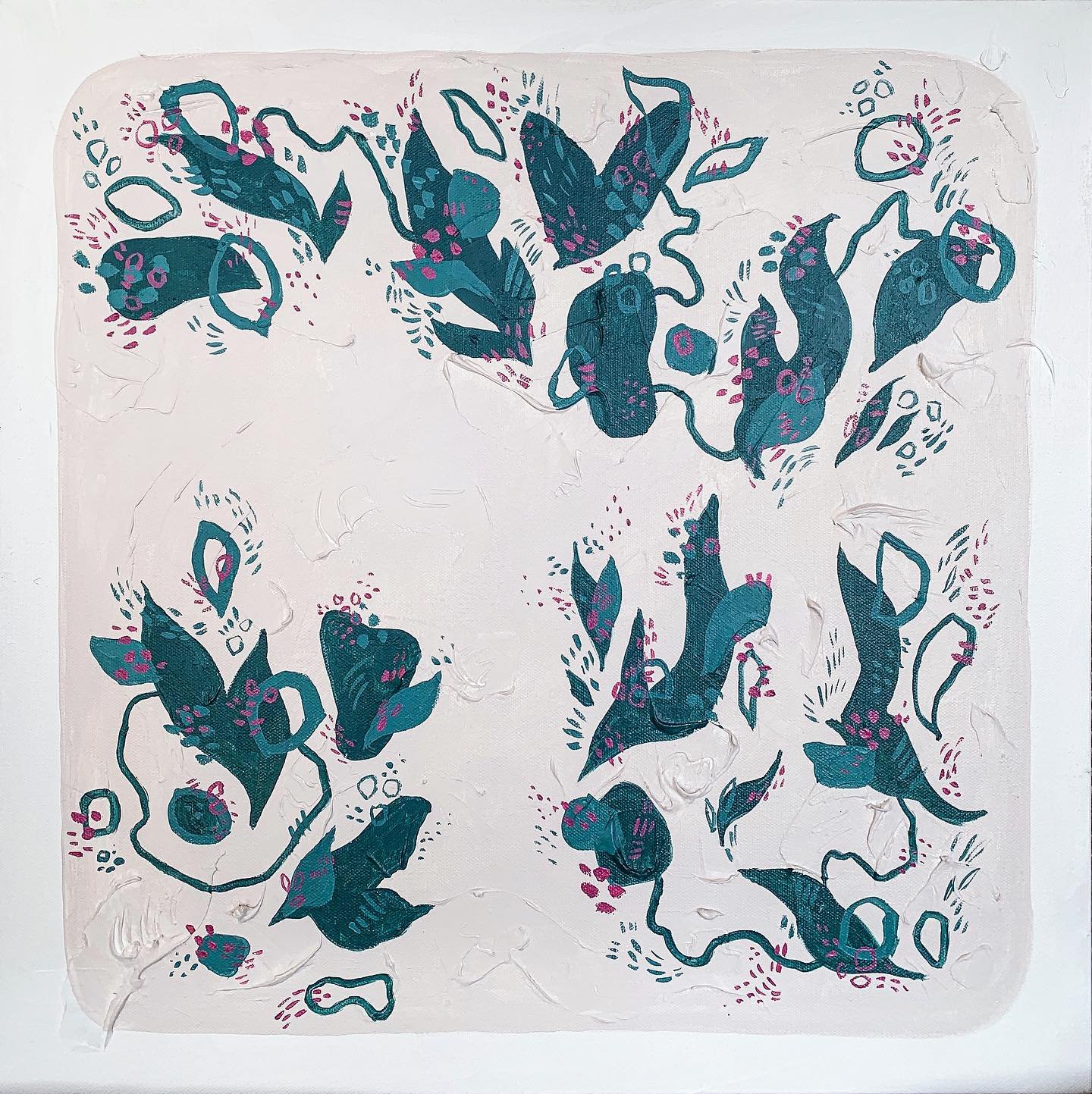 My pieces are made with molding paste and heavy acrylic that I intentionally layer with both a painter’s knife and brushes to create a unique, textured look. The way the lights catches the dips + ridges on each artwork is simply mesmerizing.